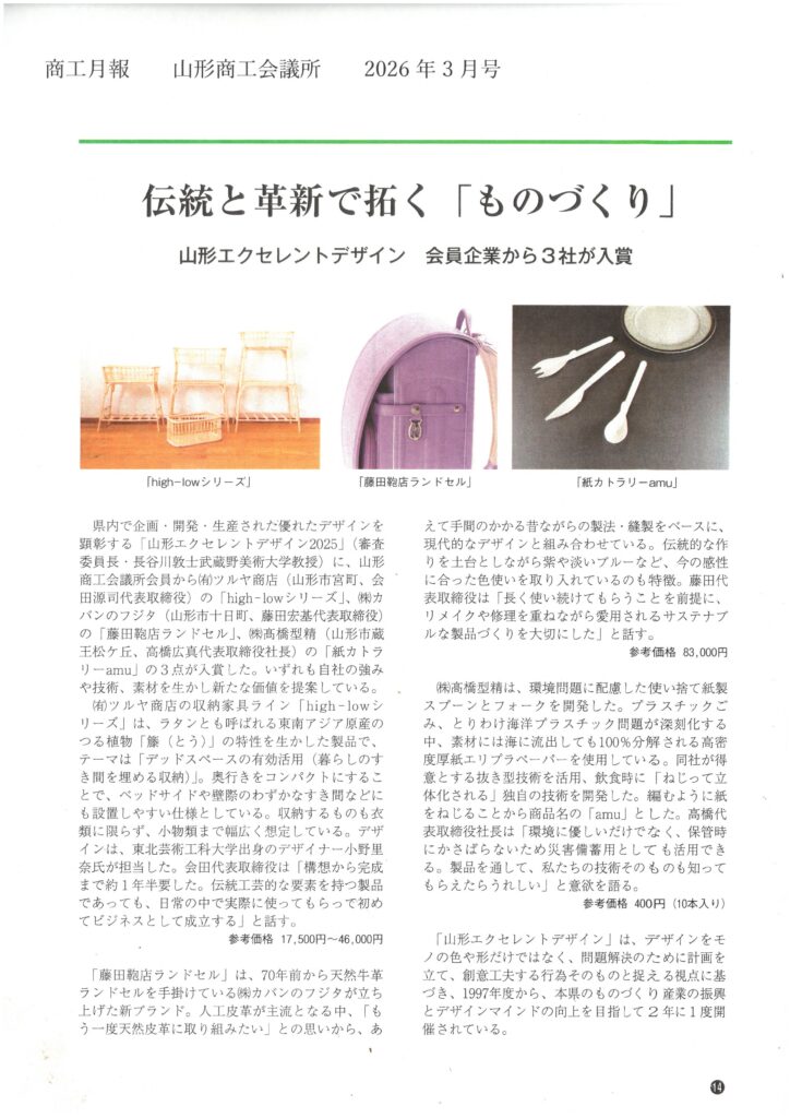 弊社「high-lowシリーズ」、昨年末に山形エクセレントデザイン賞受賞についての記事を掲載していただきました。